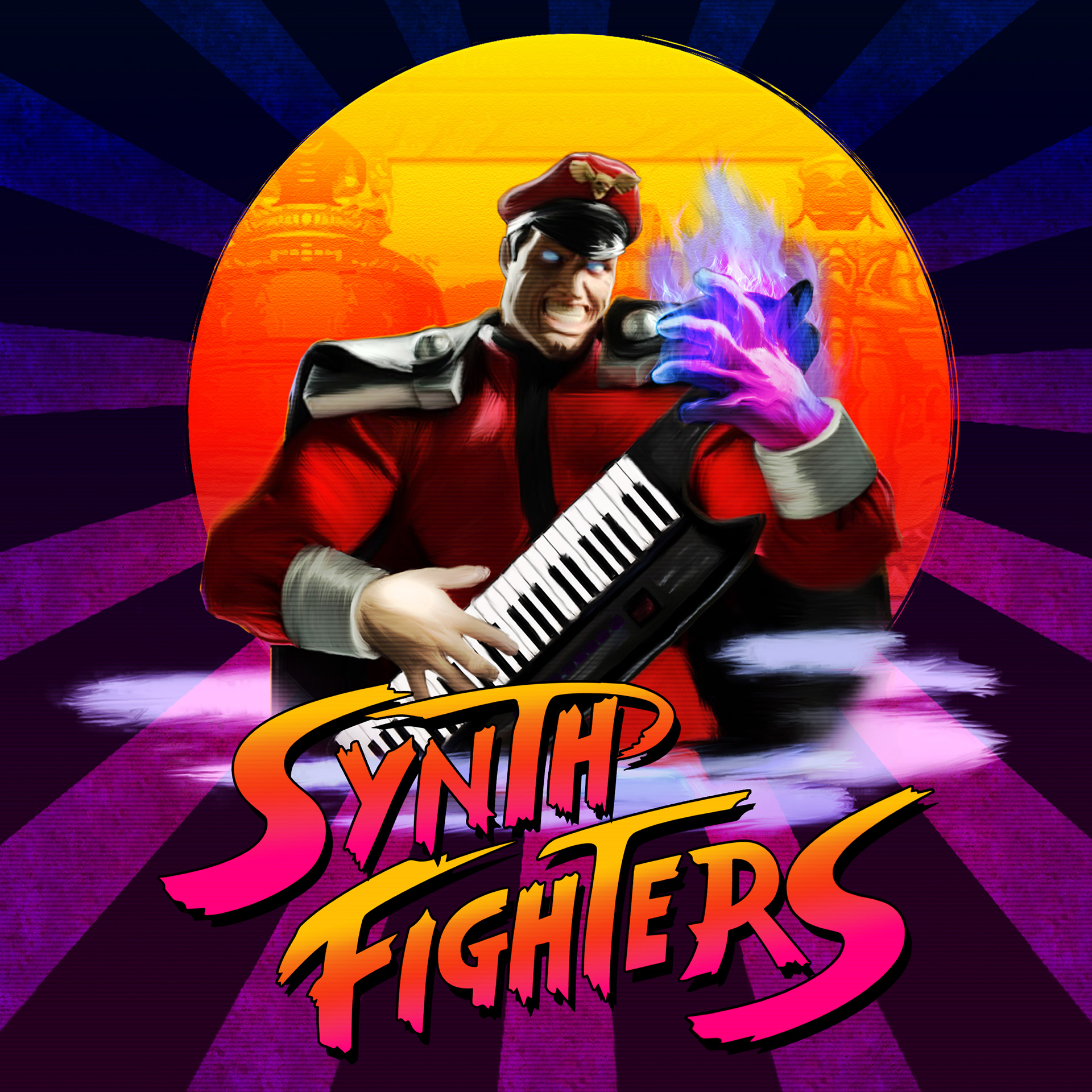 Cover Artwork for the digital release of Synth Fighters, a Synth tribute album of the Street fighters soundtrack. Available on 30th Floor Records.